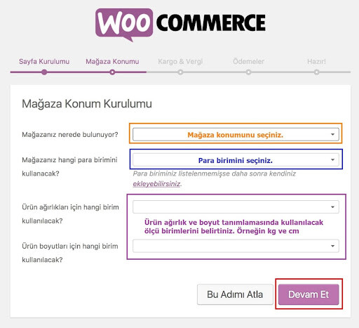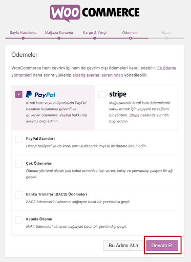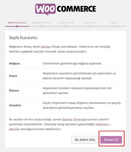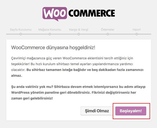 - WooCommerce Kurulum Sihirbazını çalıştırın.
